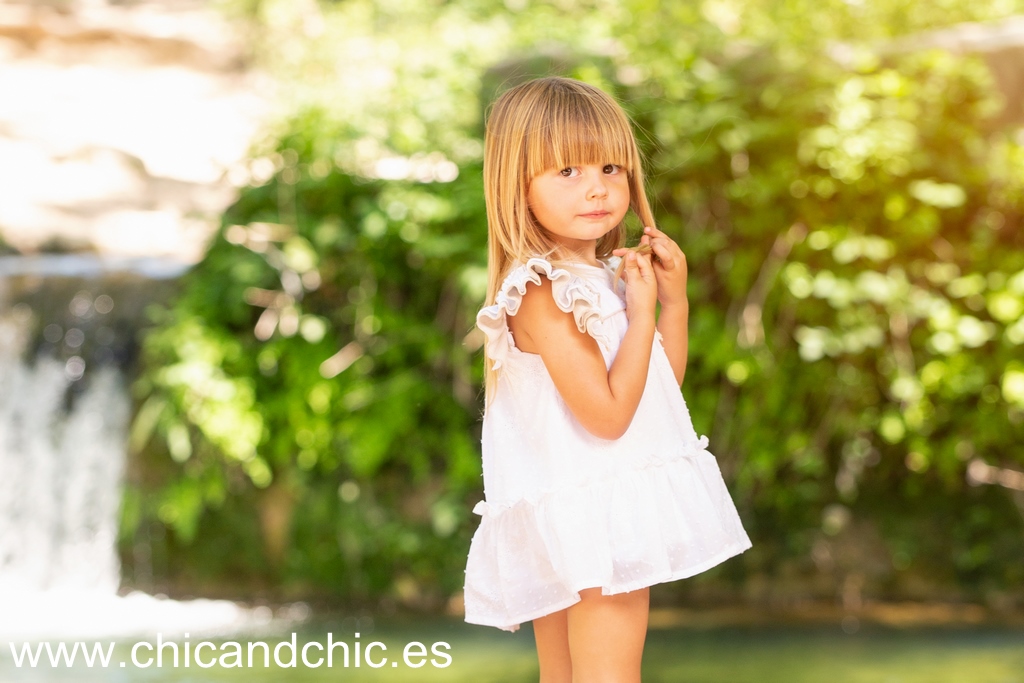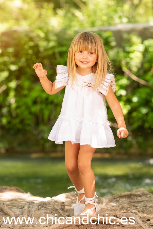 Precioso jesuito en batista bordada con vuelo . Es de color blanco con detalles en camel. Lleva braguita de volantes a juego.