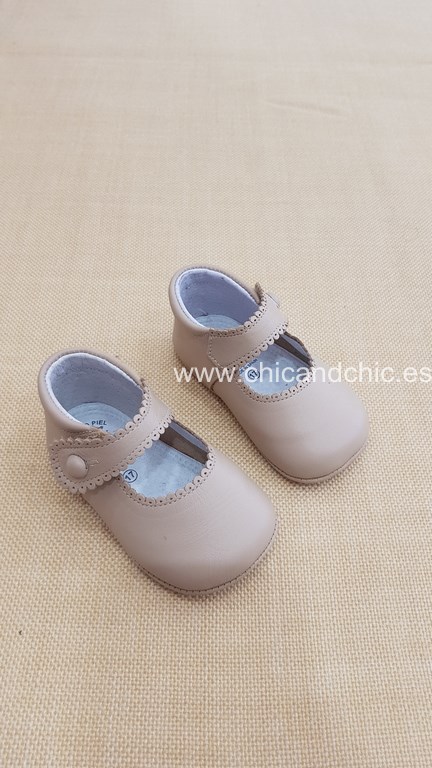 Zapato bebe en piel napa camel. Es un zapato con suela blanda para bebés que no caminan. Ideales para cualquier ceremonia.