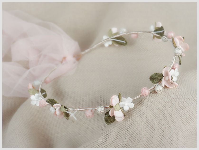 Corona flores pequeñas de ceremonia niña. Color rosa