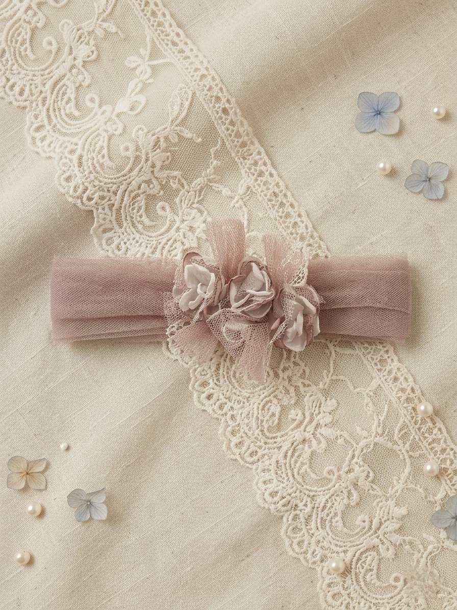 Adorno cinturón flores. Rosa-blanco roto.