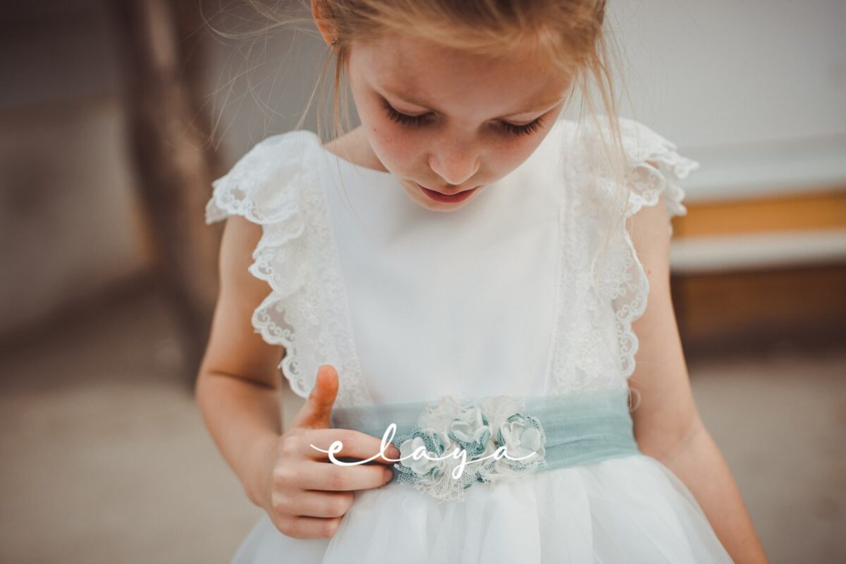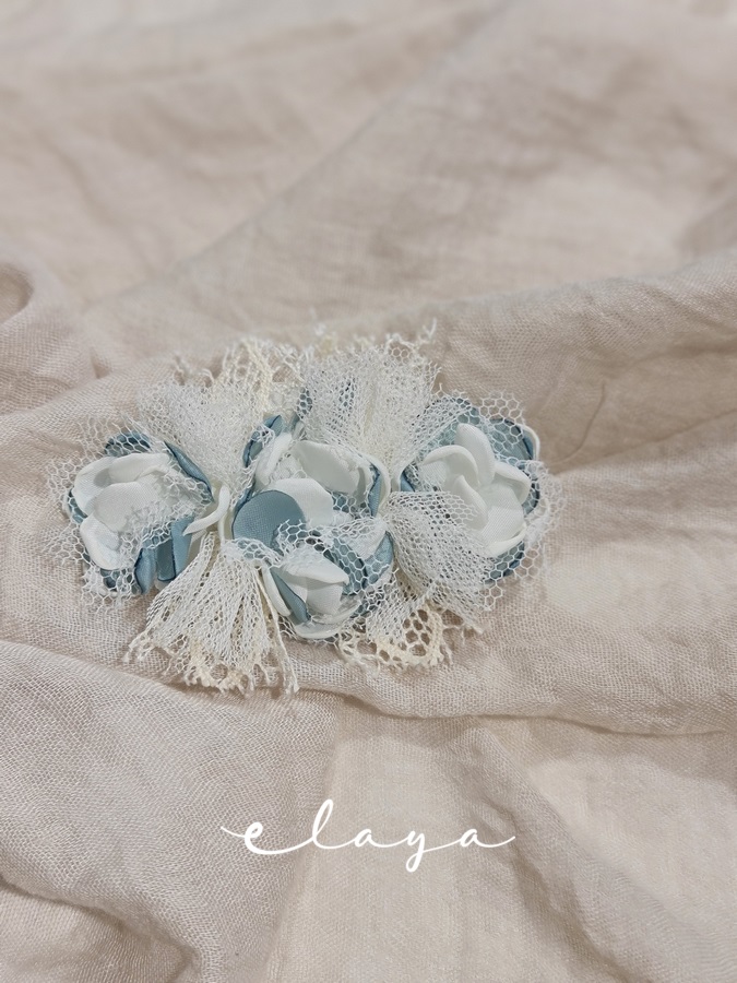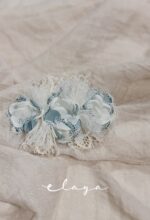 Adorno cinturón flores. Verde agua-blanco roto.