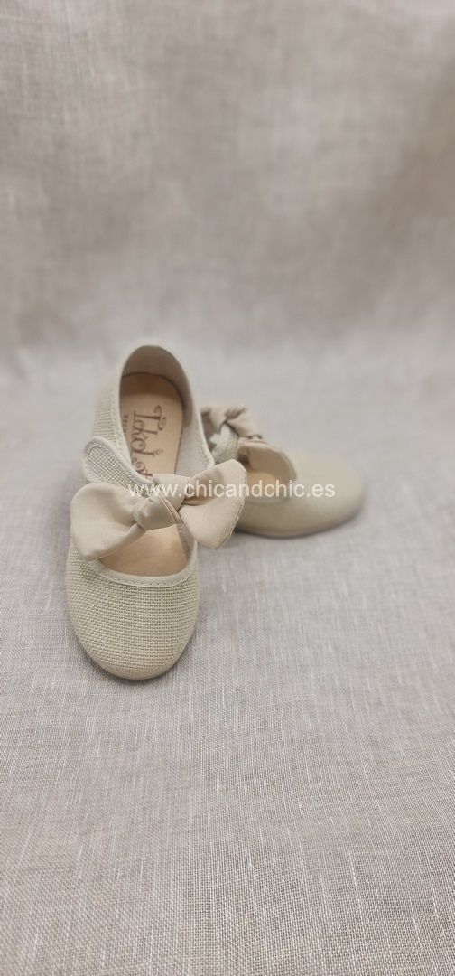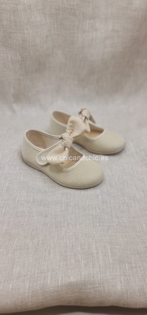Merceditas niña con lazo en lino tostado