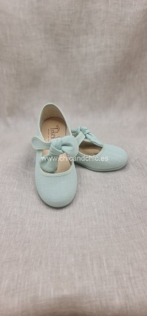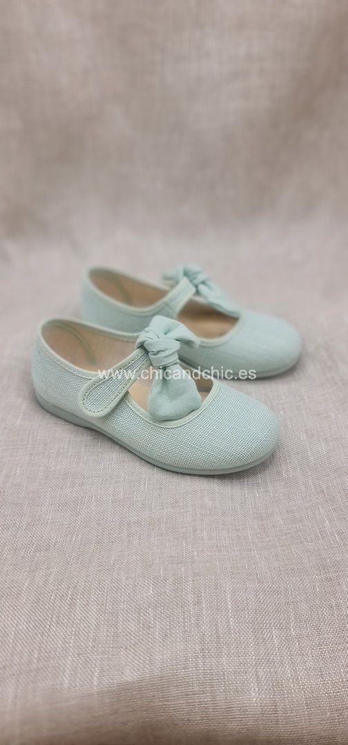 Merceditas niña con lazo en lino verde