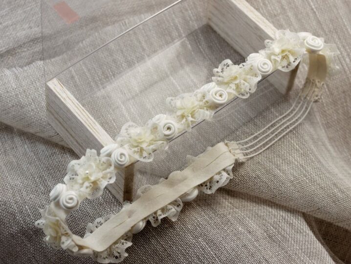 Diadema flores de bebe. Lleva goma elástica para sujetar.
