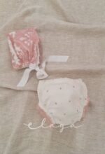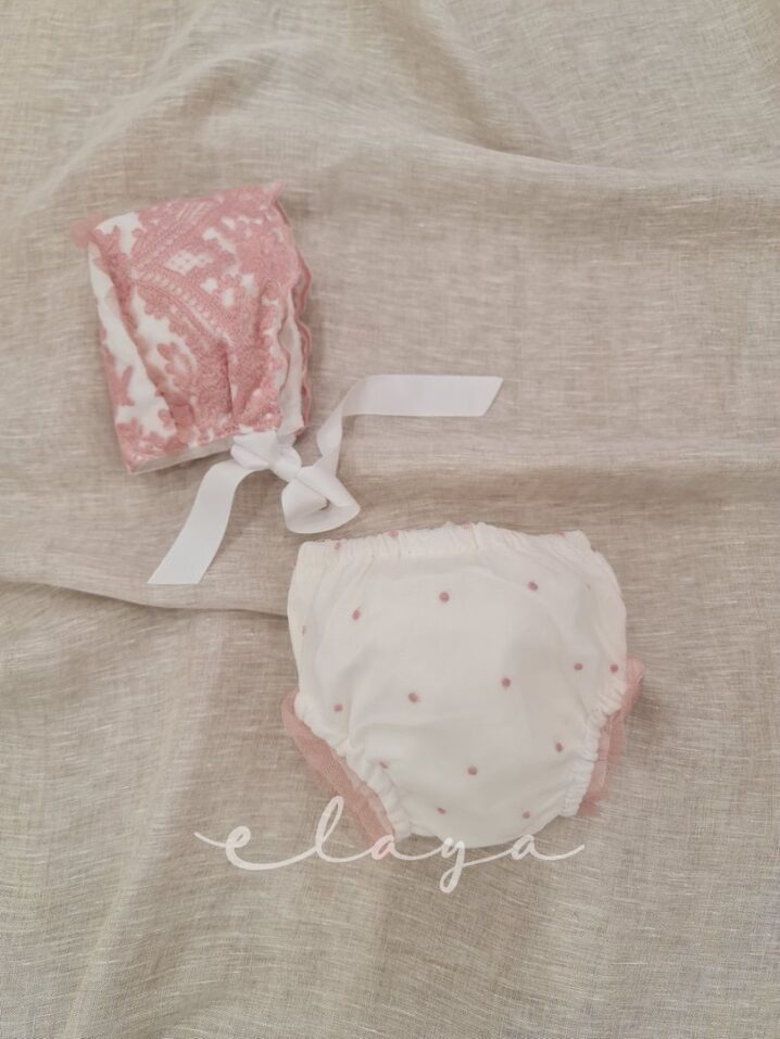 Capota del vestido de ceremonia manga corta en tul bordado rosa.