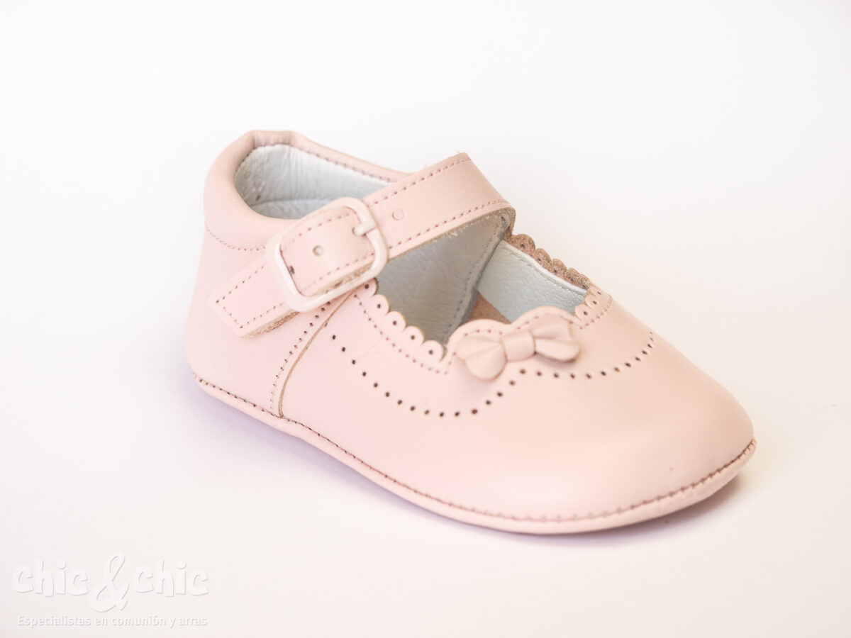 Zapato bebe en piel rosa.
