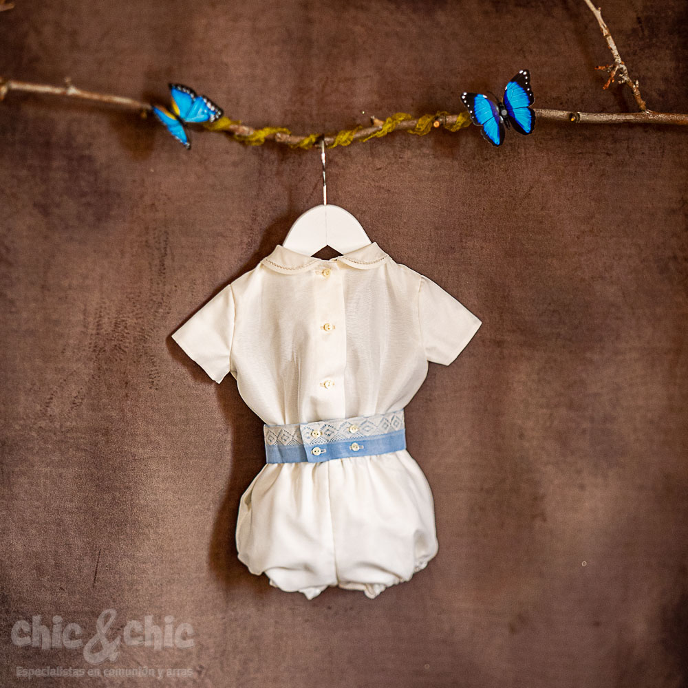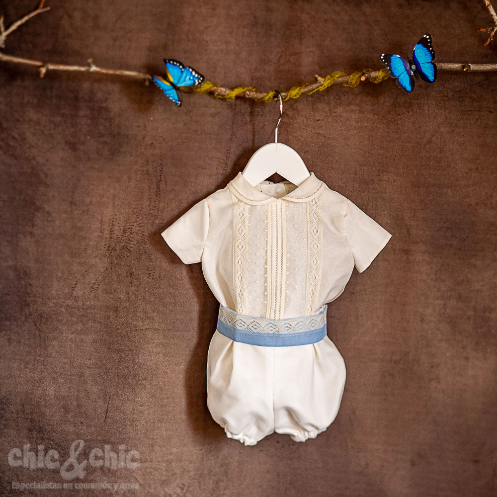 Conjunto de niño en organza. Beige-azul
