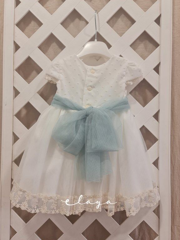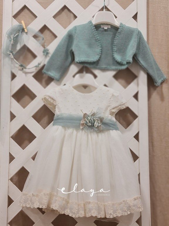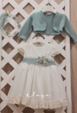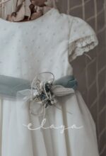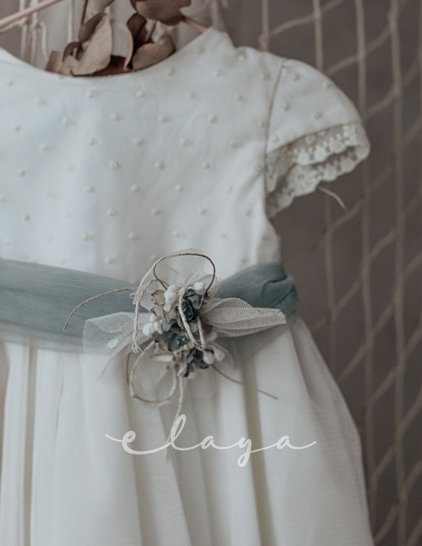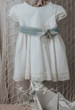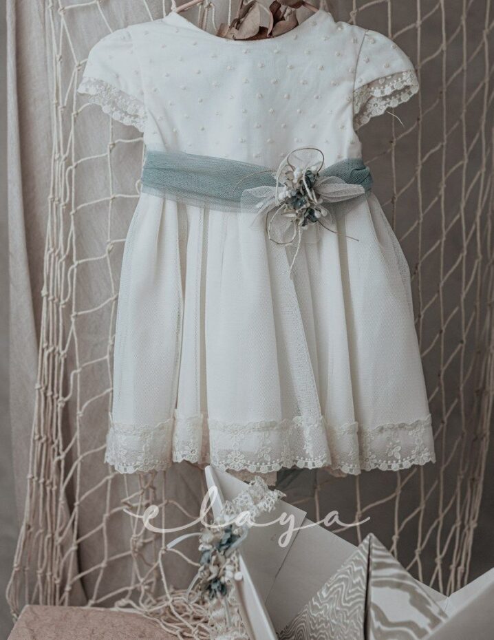 Vestido de ceremonia manga corta, con una bonita puntilla en la falda, y en la manga,