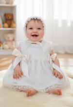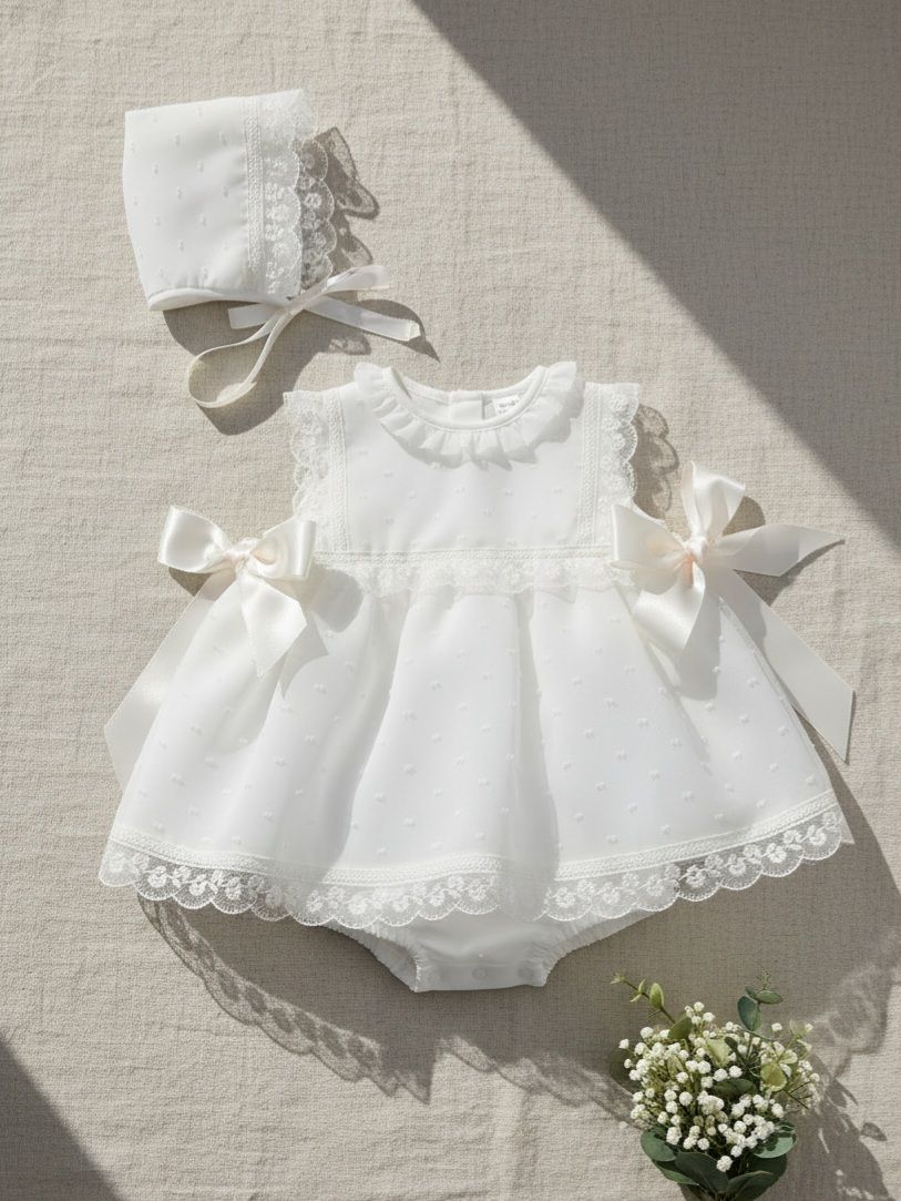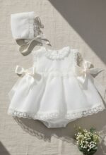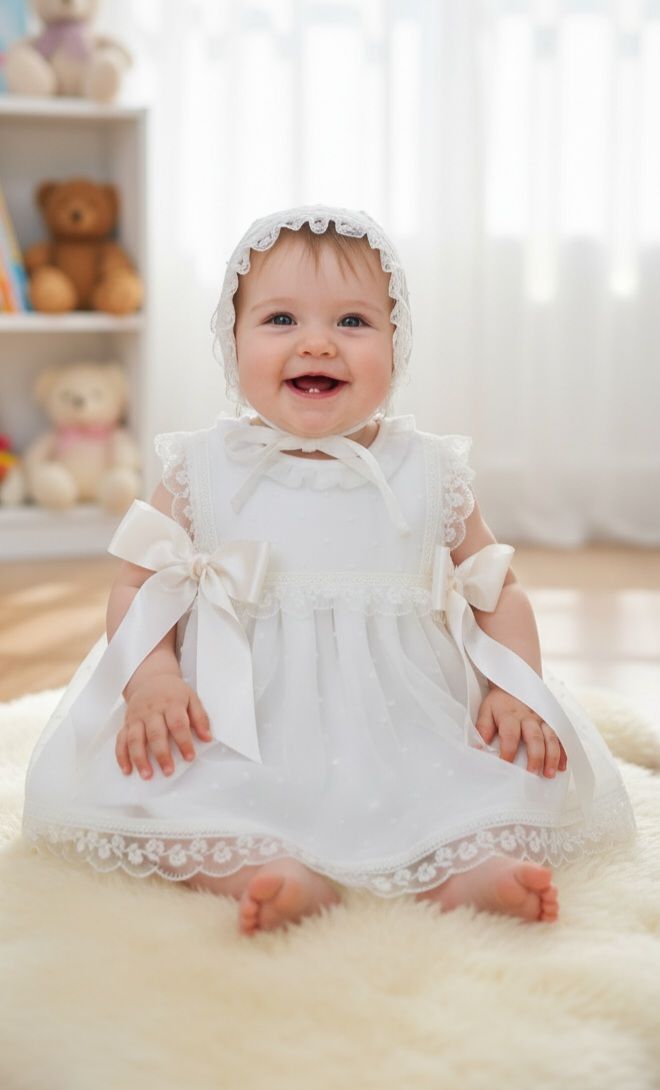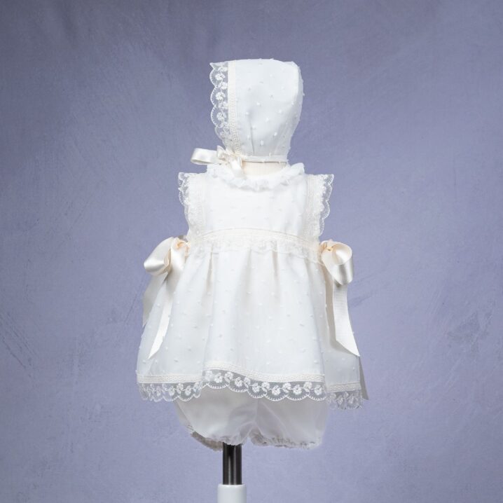 Jesusito de acristianar plumeti organza color beige.