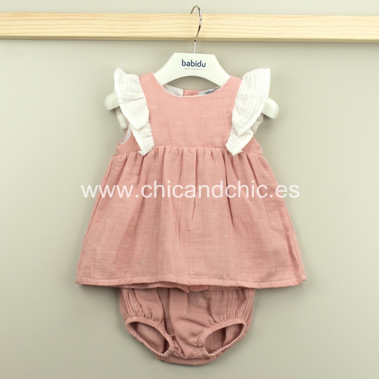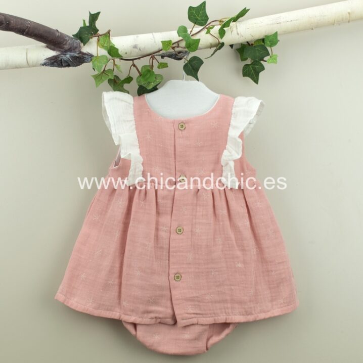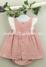 Jesusito con braguita en bambula de algodón con manga volantes en color rosa maquillaje.