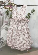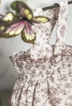 Ranita con tirantes en tejido de algodón suave. Tono rosa suave, con un sutil estampado.