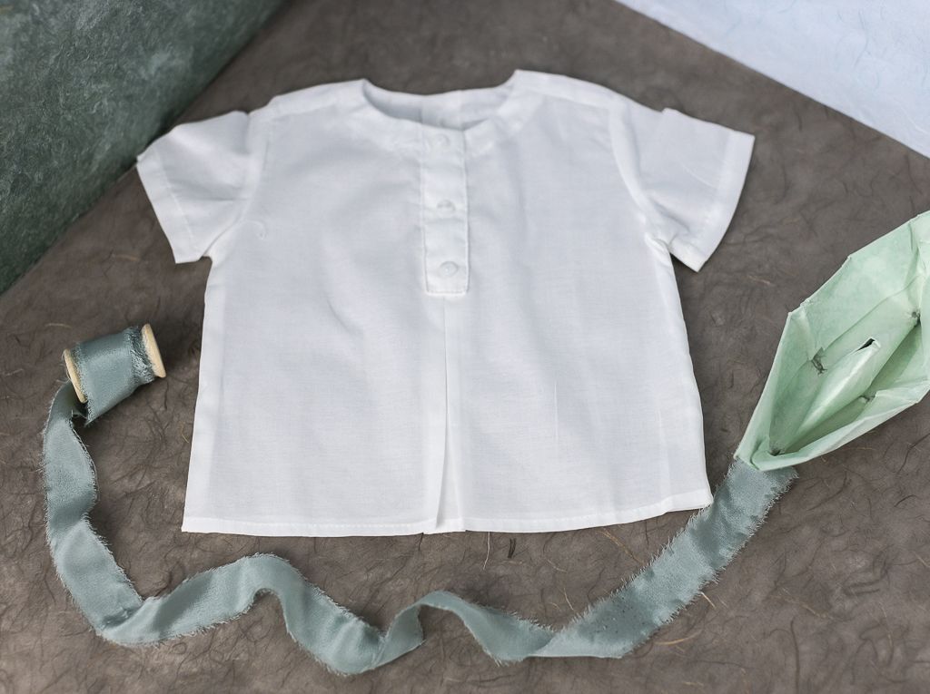 Blusa en algodón en color blanco. Abotonada en la parte trasera.