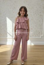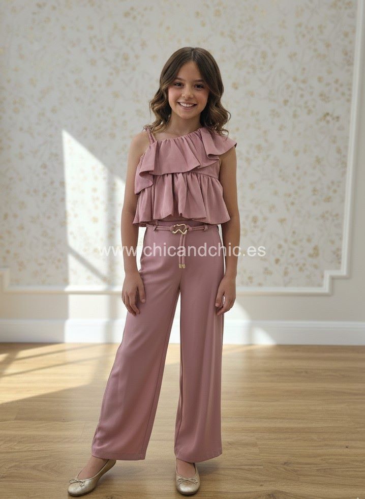 Conjunto de pantalón largo crepe. Color Orquidea