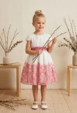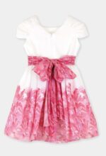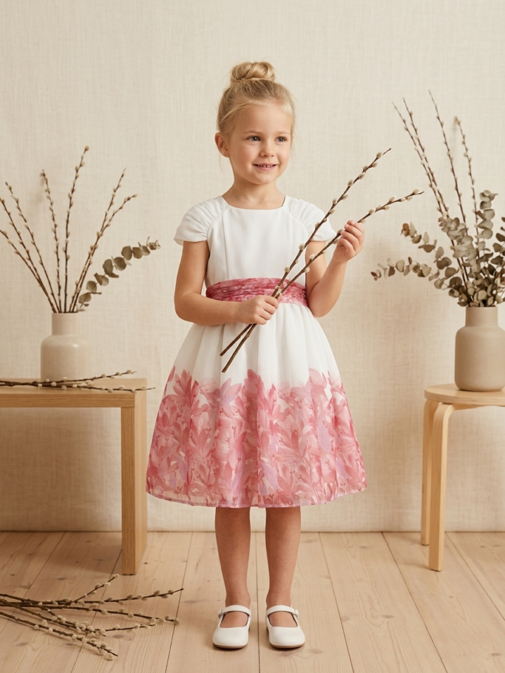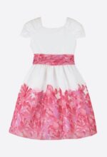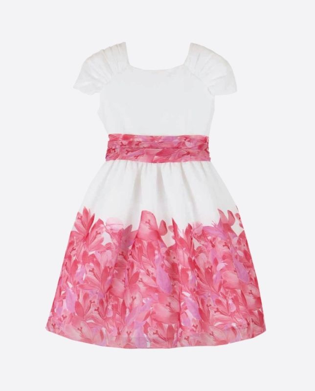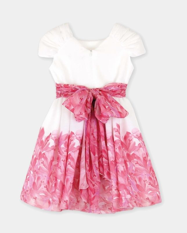 Vestido de ceremonia niña en gasa estampada color fucsia.