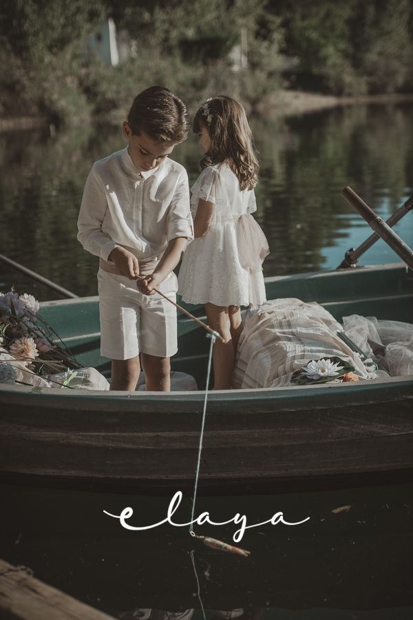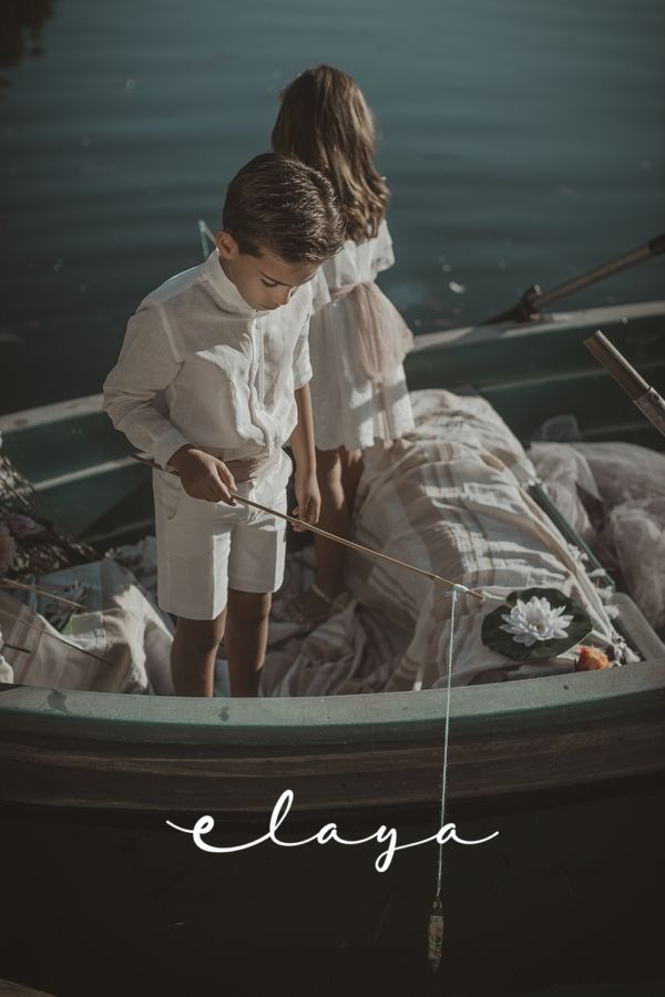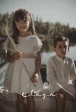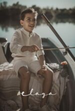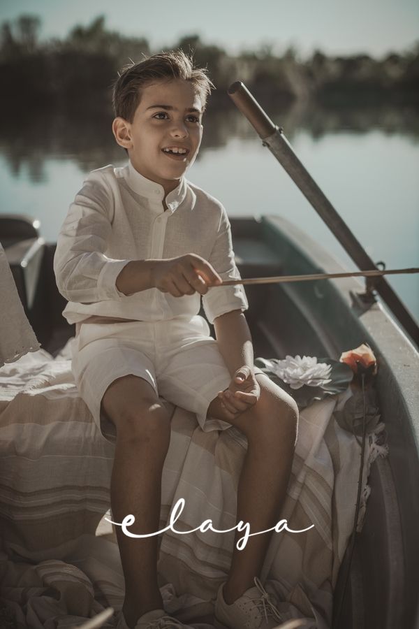 Conjunto de lino niño. Camisa de cuello mao en lino crudo y fajín de jaretas de lino rosa maquillaje.