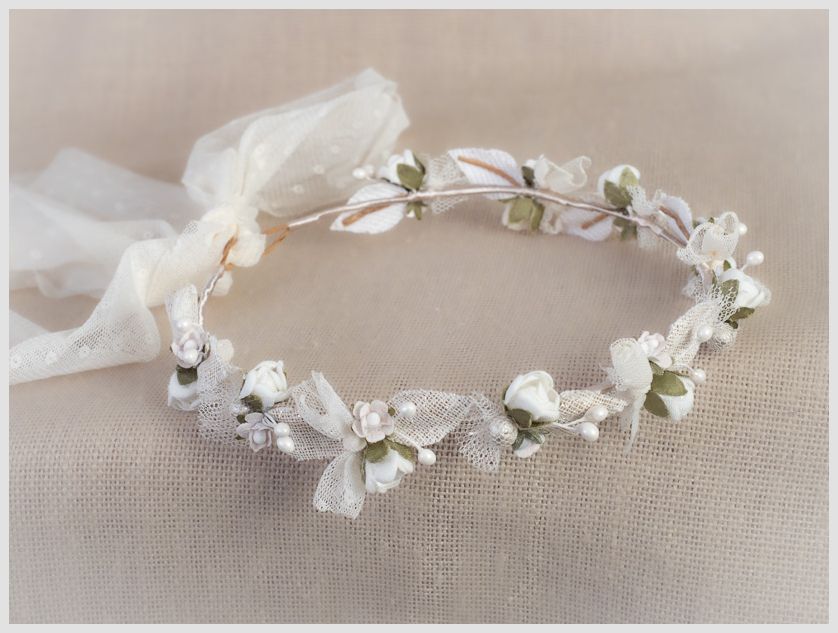Corona flores pequeñas de ceremonia niña. Color crudo
