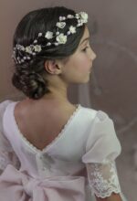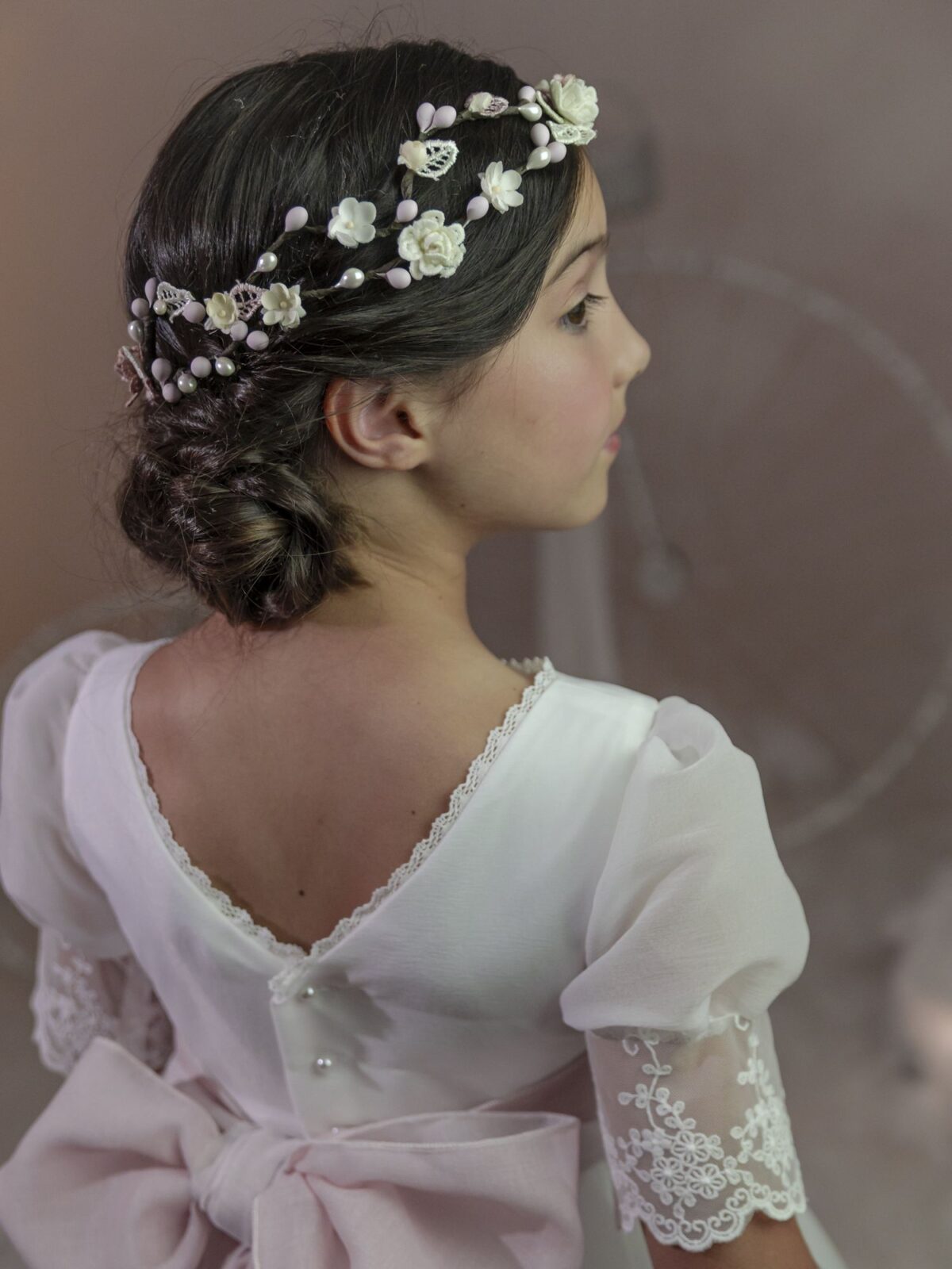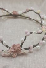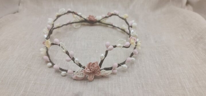 Corona doble flores pequeñas tonos rosas