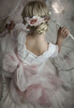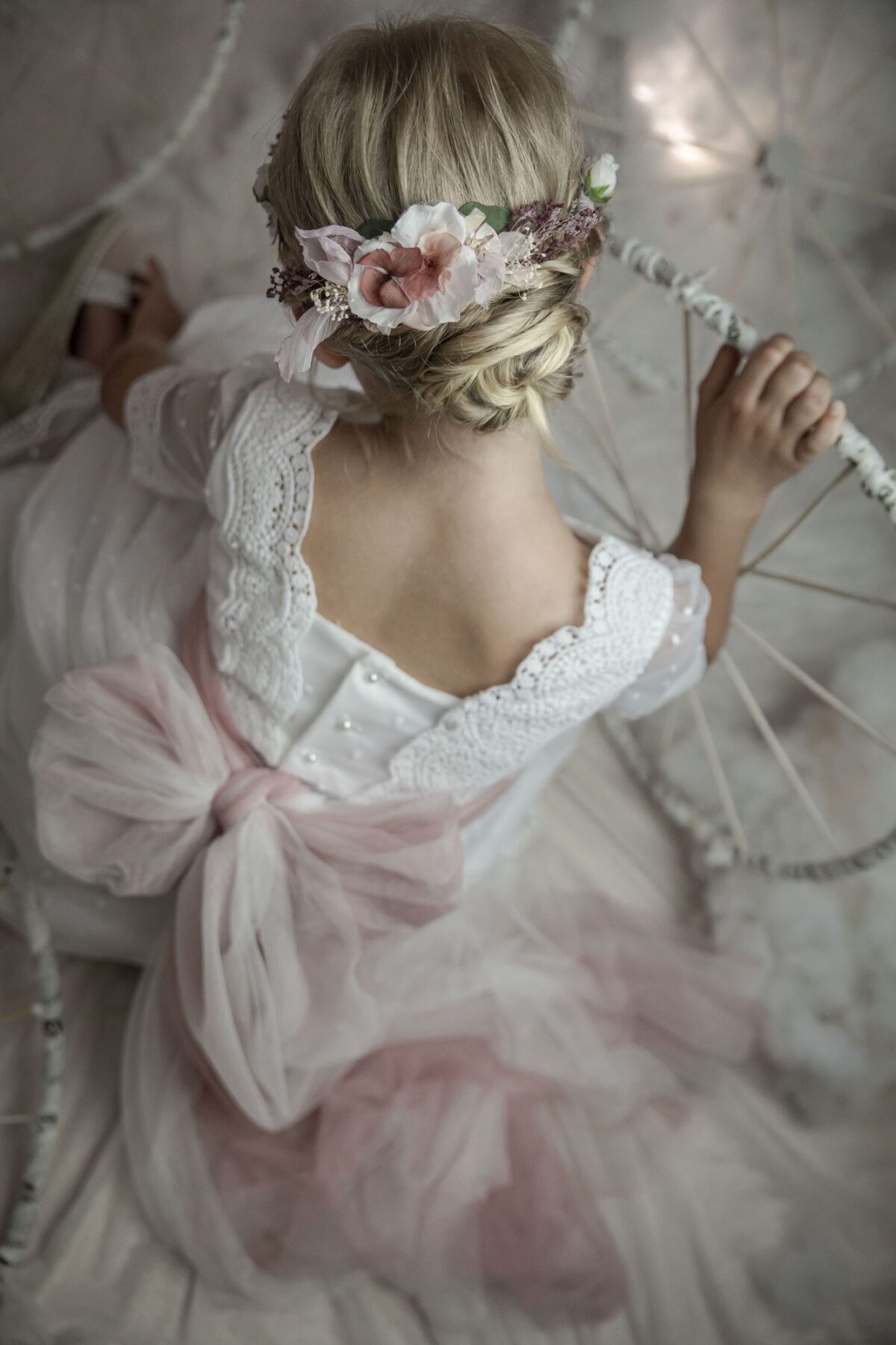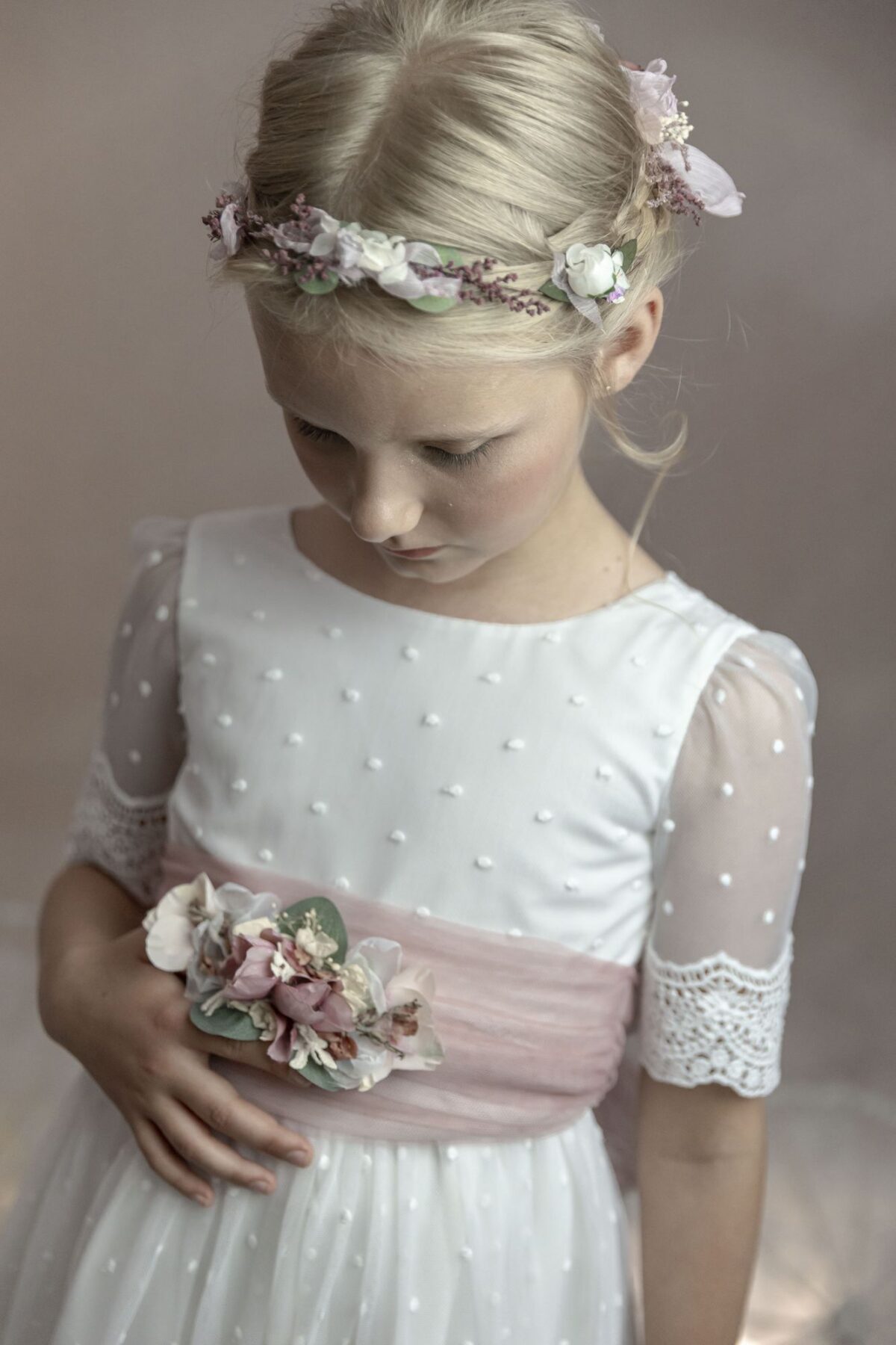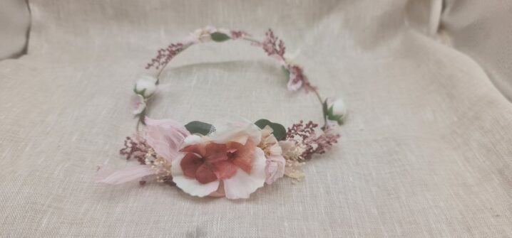 Corona flores en tonos rosas