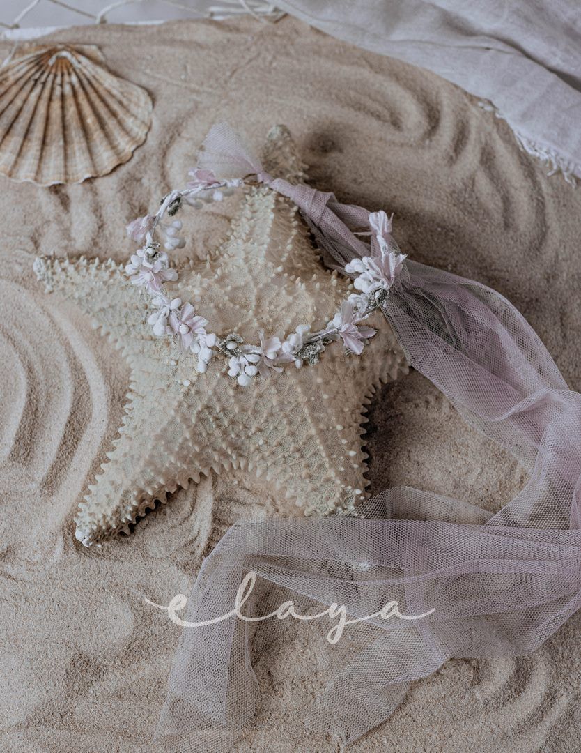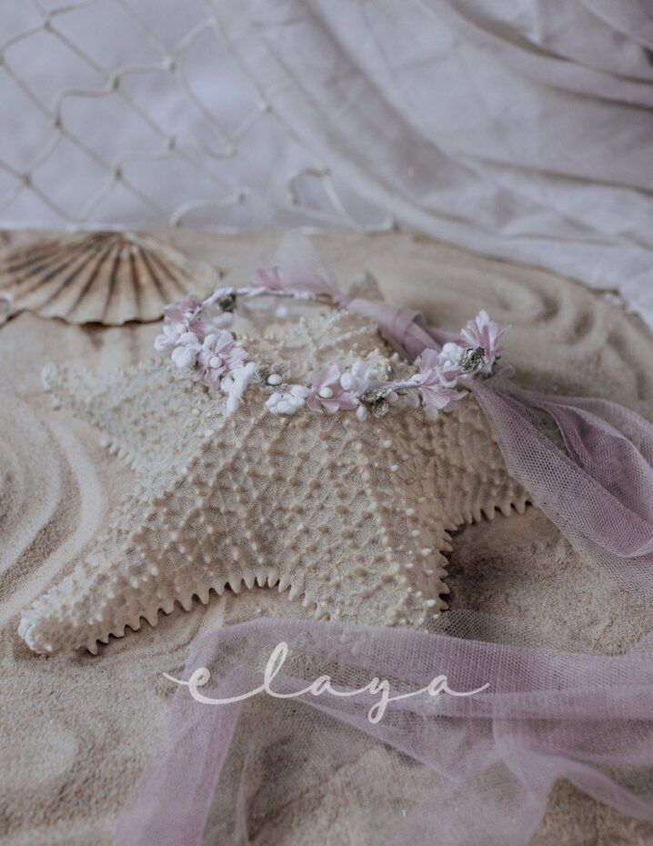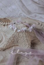 Tira de flores en blanco roto y rosa, que sirve para cinturones. Viene con tul de atar rosa.