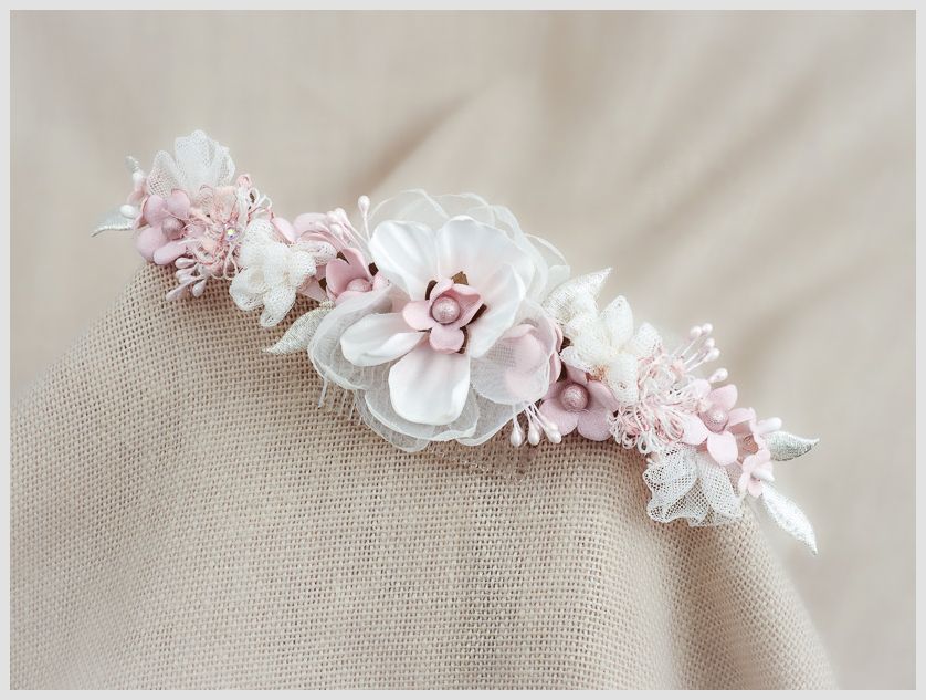 Tocado  flores de ceremonia niña. Color rosa