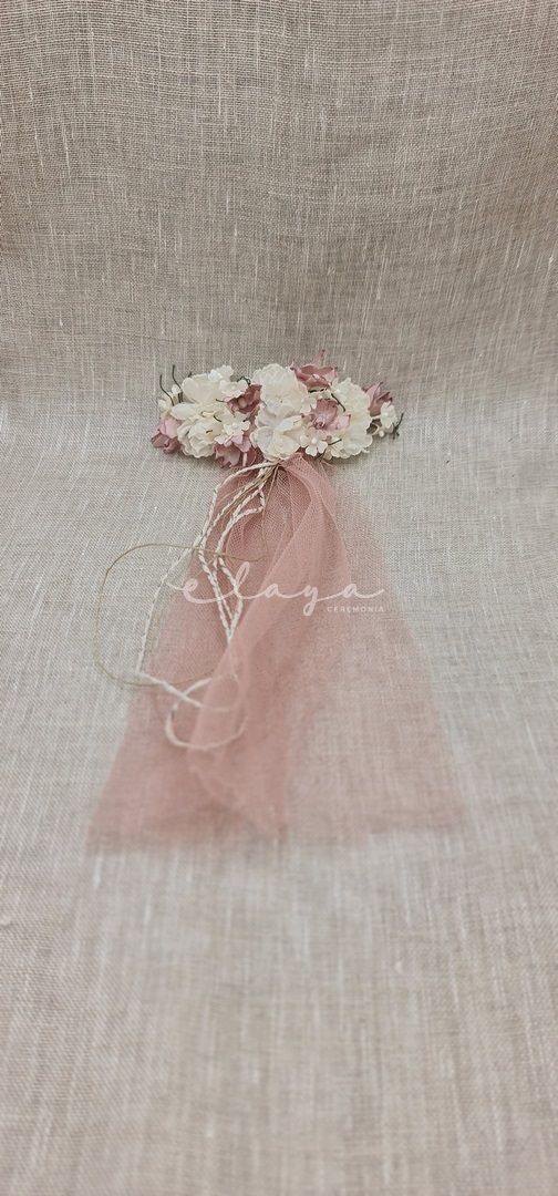 Tocado de flores con pinza. Colores blanco roto-rosa
