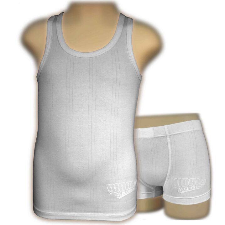 Camiseta de tirantes con un pequeño dibujo a rayas en vertical. La parte inferior es un boxer con el mismo dibujo en vertical.La composición es 95% algodón y 5% elastano, lo que le hace muy cómoda y que se adapte al cuerpo.