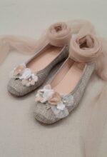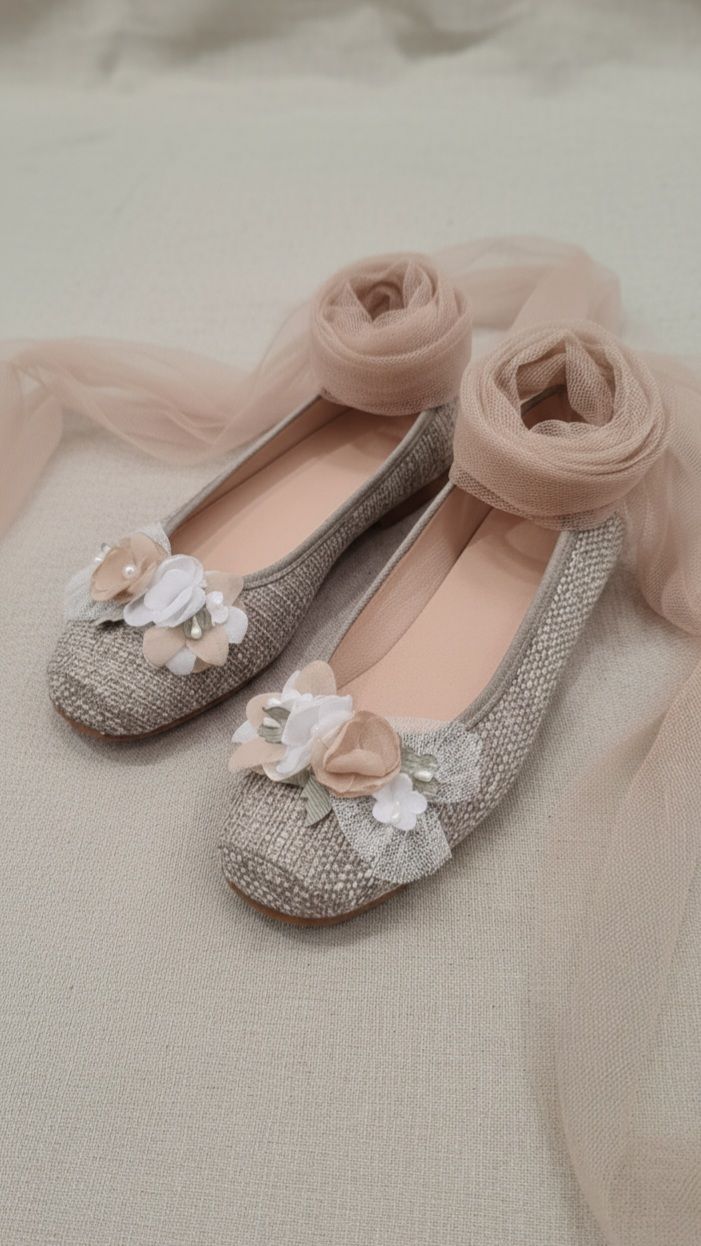Zapato con hebilla de piel, en ante color piedra.