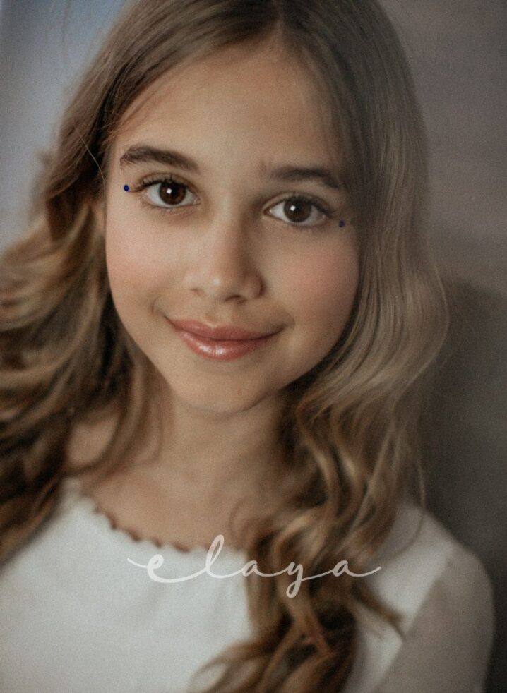 - LARGO TOTAL: se mide desde la base del cuello al suelo, por delante y con zapatos puestos. TRUCO: le ponemos una camiseta de manga corta. El punto exacto está en el cuello de la camiseta, quedará dos dedos por encima de la clavícula. Desde ese punto del cuello de la camiseta, dejamos caer el metro por delante del pecho y la tripita de la niña hasta el suelo, con zapatos puestos.
