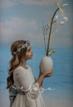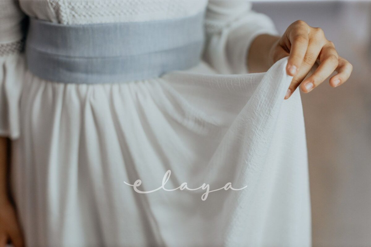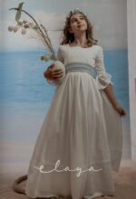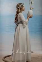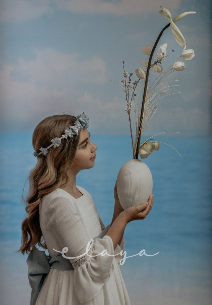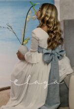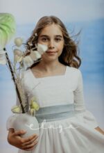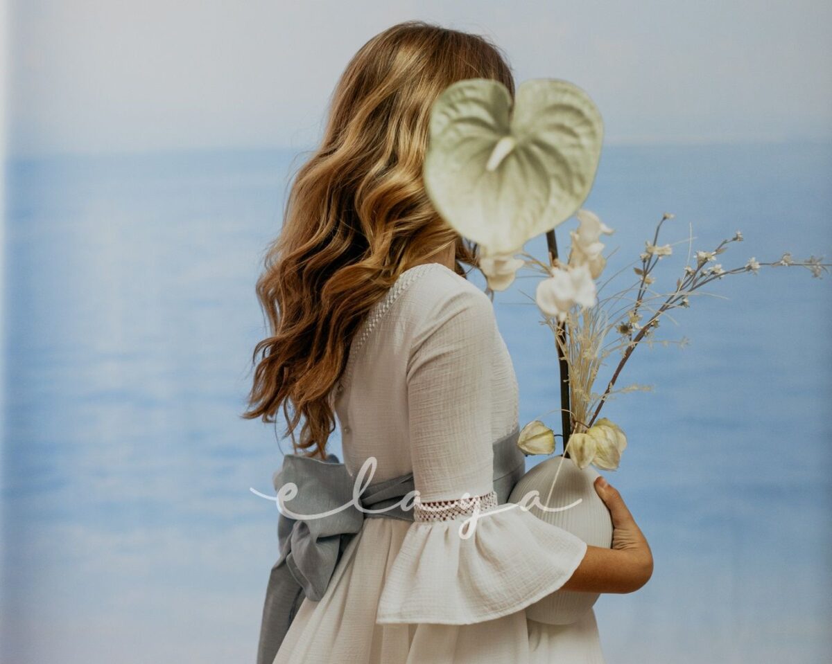 Vestido de comunión bambula ELISA. Blanco roto-azul
